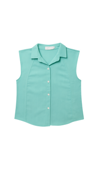 Top tipo boxy en Lino color Aqua con corte en hombros